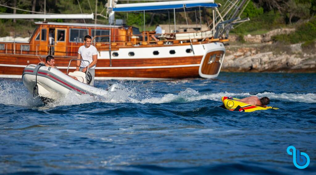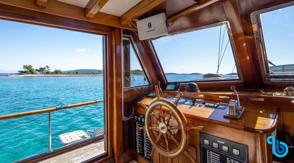 An Bord dieses Bootes ist der Skipper obligatorisch und verantwortlich für Navigation, Sicherheit und Führung des Bootes.