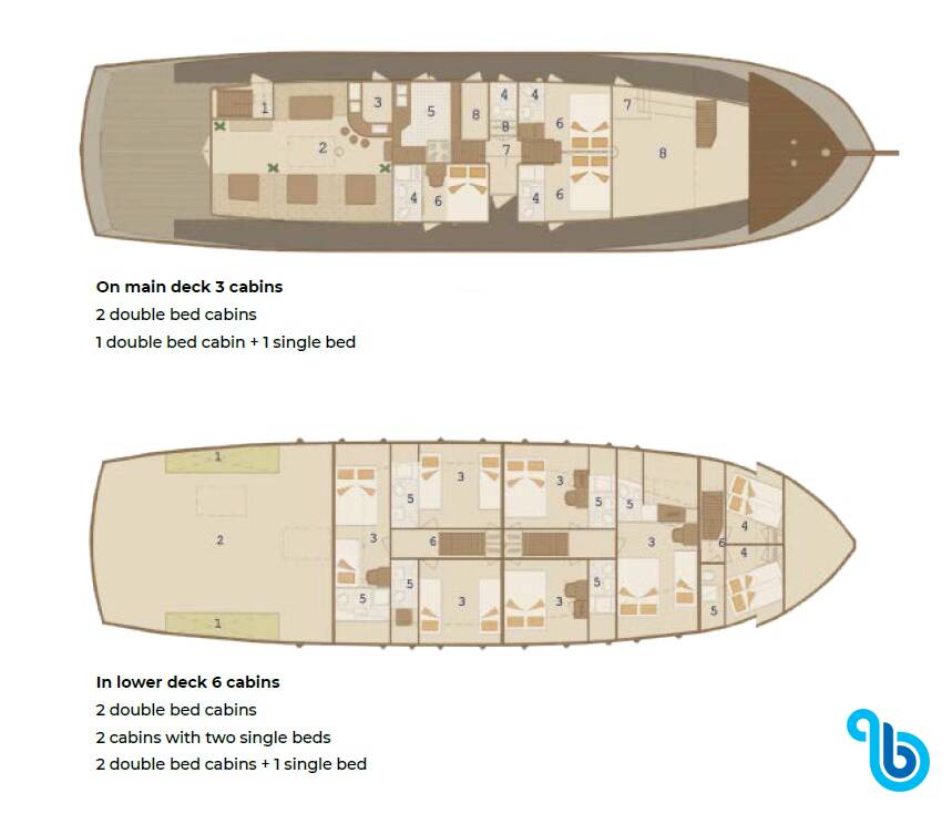 Die meisten Yachten können je nach Innenaufteilung 6 bis 12 Gäste aufnehmen.