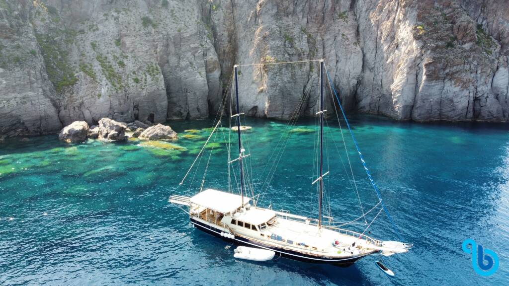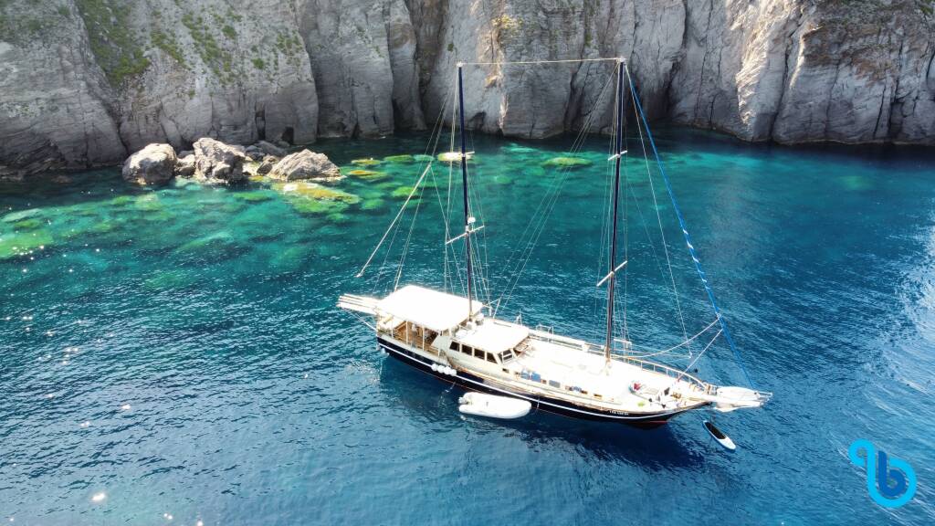 Gulet Gulet KAPTAN YILMAZ II, Baujahr 1995 liegt in Italien vor Anker. Sie hat 8 Kabinen, bietet Platz für 16 Personen.