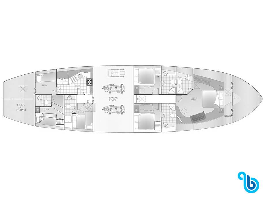 • Katamaran für großzügige Räume, überlegene Stabilität und mehr Privatsphäre.