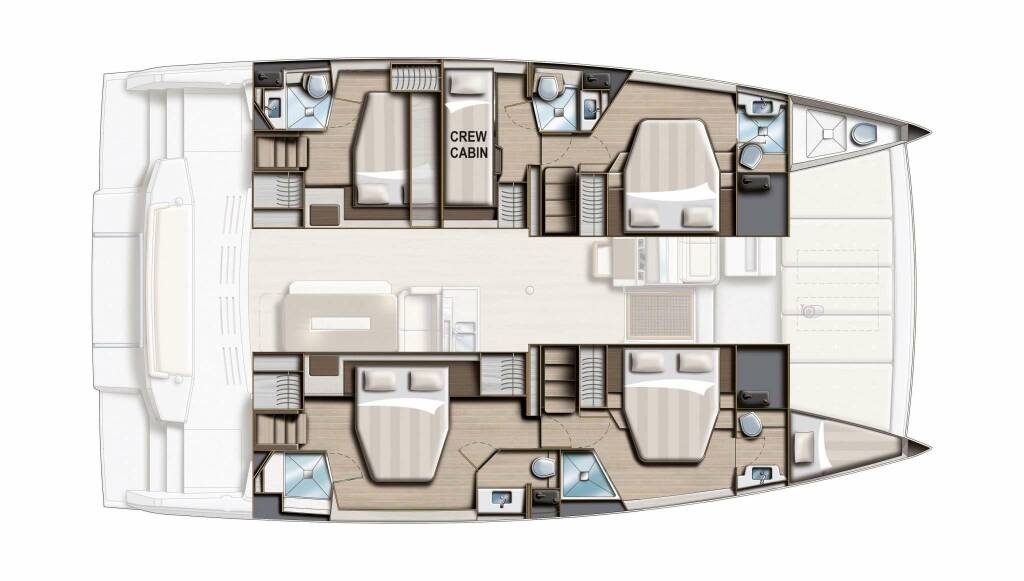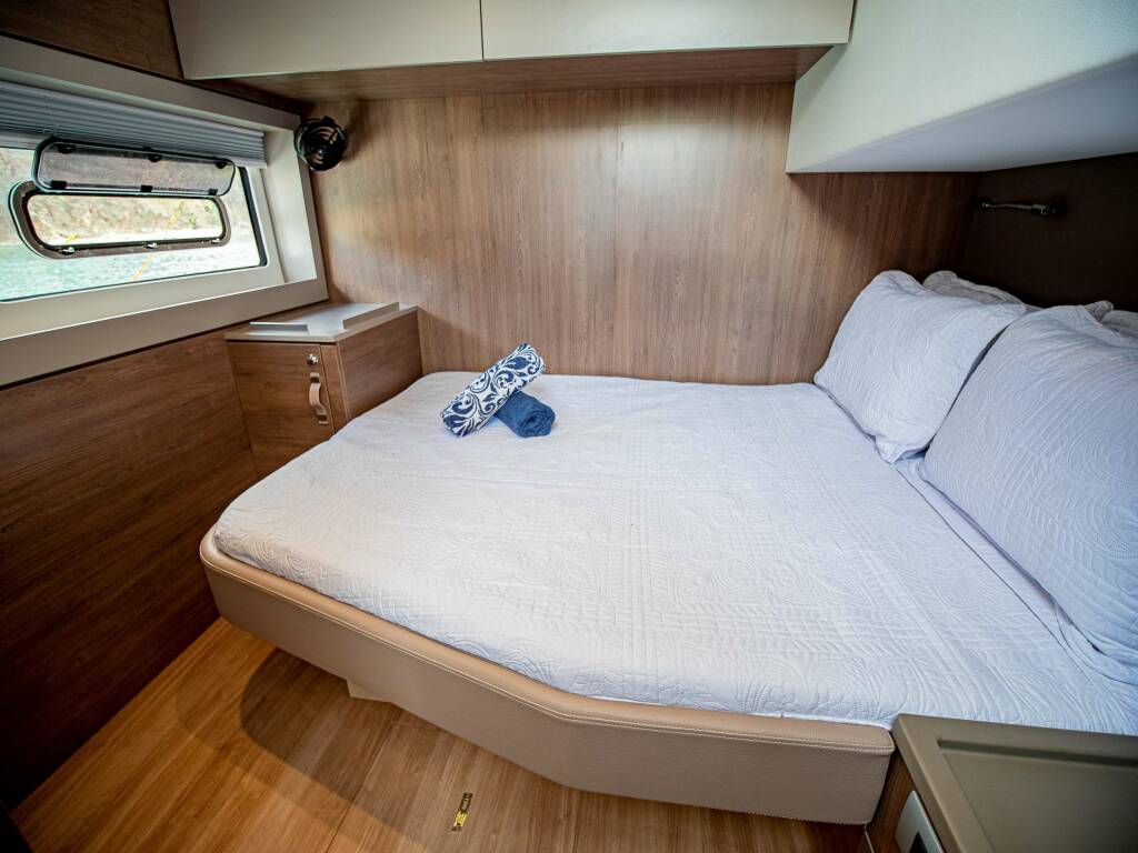 Accommodation: Bavarian Bliss is equipped with 4 queen cabins for guest use each with a private en-suite electric head, shower, and sink/vanity.