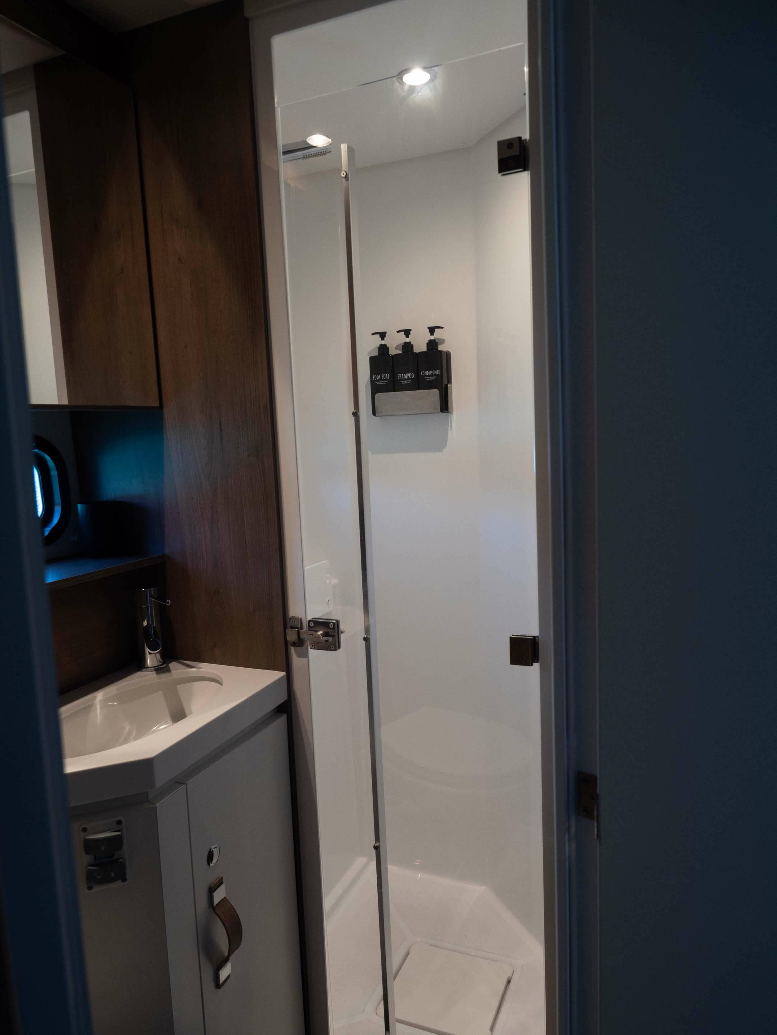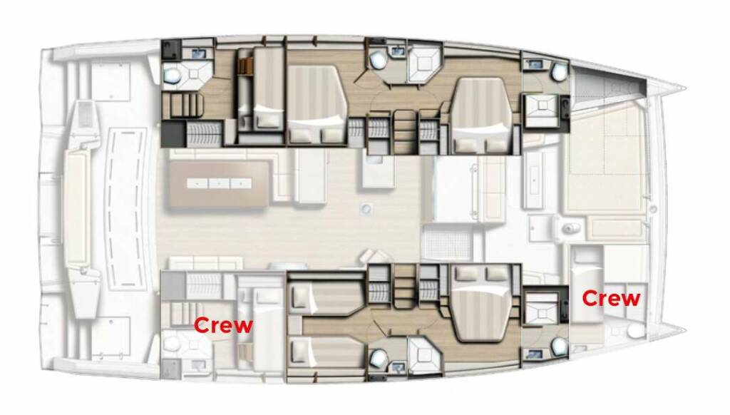 Crew: 1 front peak+WC, 1 aft triple cabin+WC.