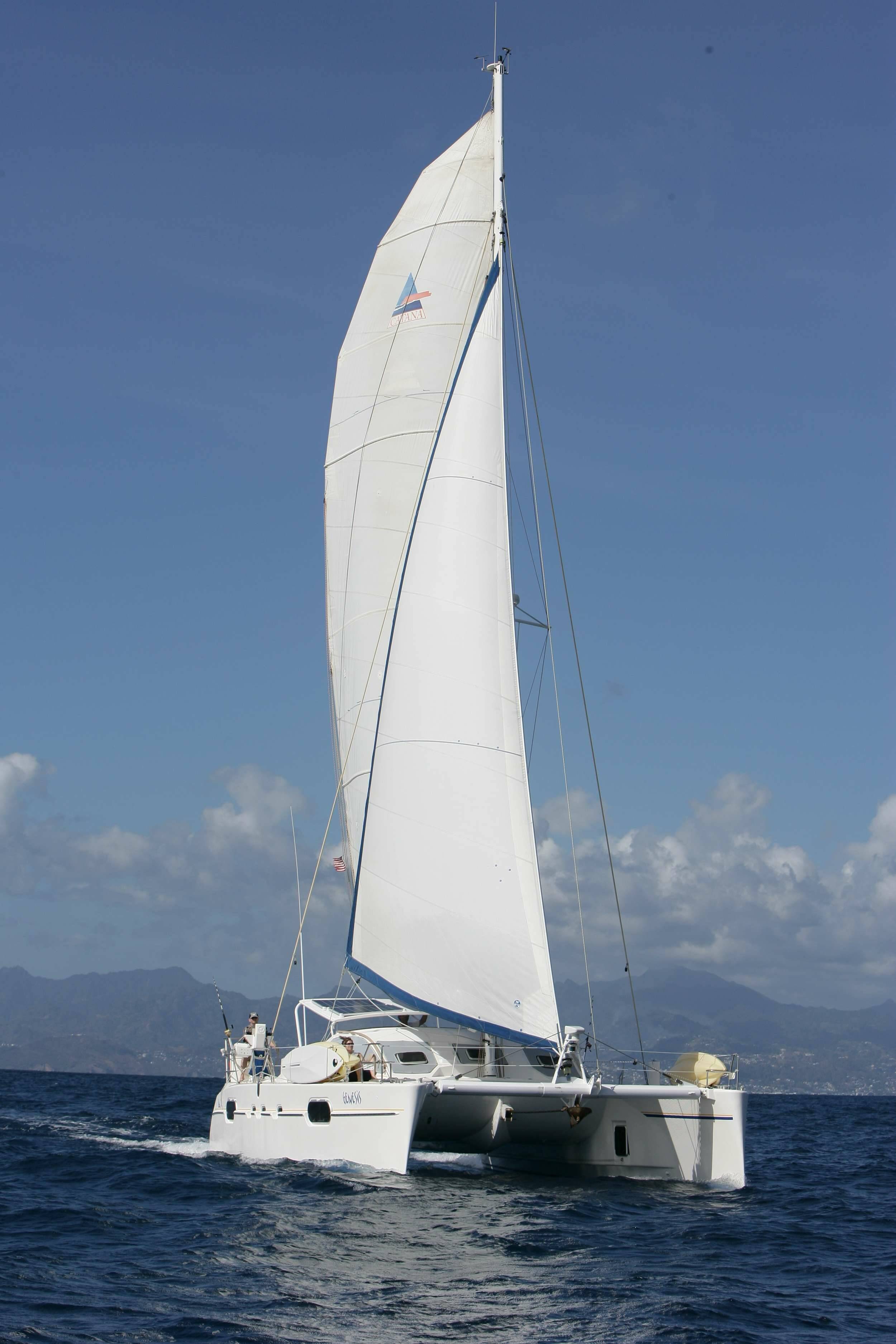 Luxus - Katamaran GENESIS, Baujahr 2000 liegt in Caribbean Leewards, Caribbean Windwards vor Anker. Sie hat 1 Kabinen, bietet Platz für 2 Personen.