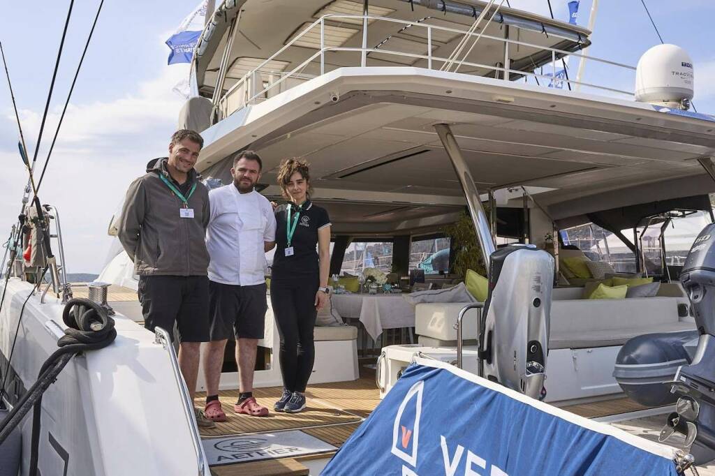 Luxus - Katamaran AETHER, Baujahr 2018 liegt in Greece vor Anker. Sie hat 4 Kabinen, bietet Platz für 8 Personen.