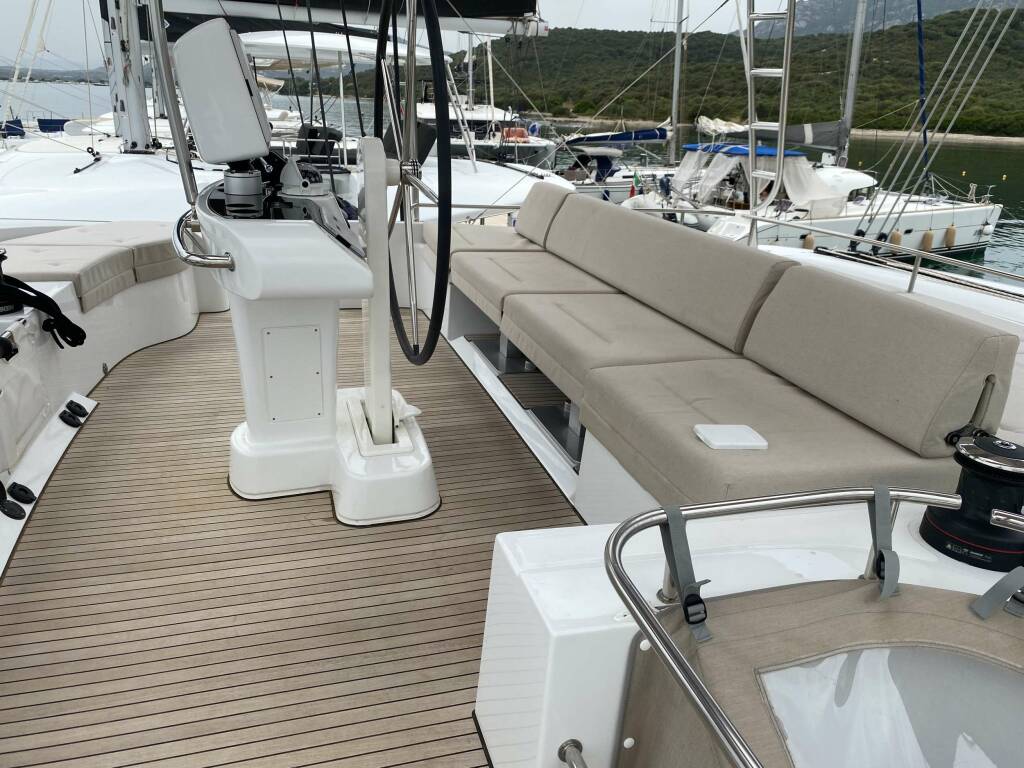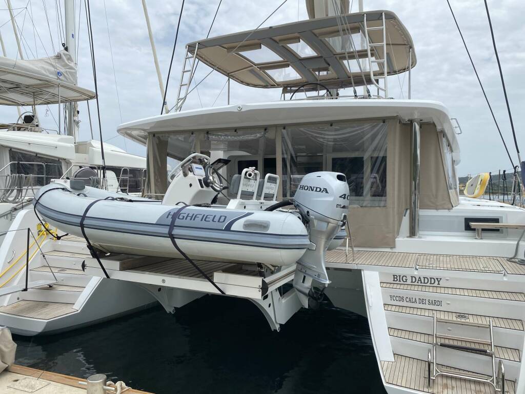 Luxus - Katamaran Big Daddy, Baujahr 2022 liegt in W. Med -Riviera/Cors/Sard. vor Anker. Sie hat 5 Kabinen, bietet Platz für 10 Personen.
