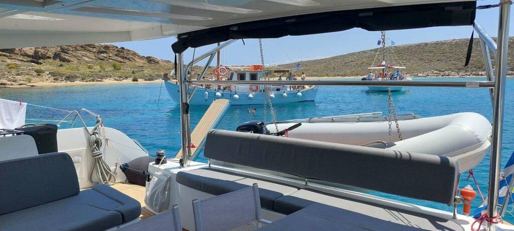Luxus - Katamaran MOONDANCE, Baujahr 2023 liegt in Greece vor Anker. Sie hat 4 Kabinen, bietet Platz für 8 Personen.