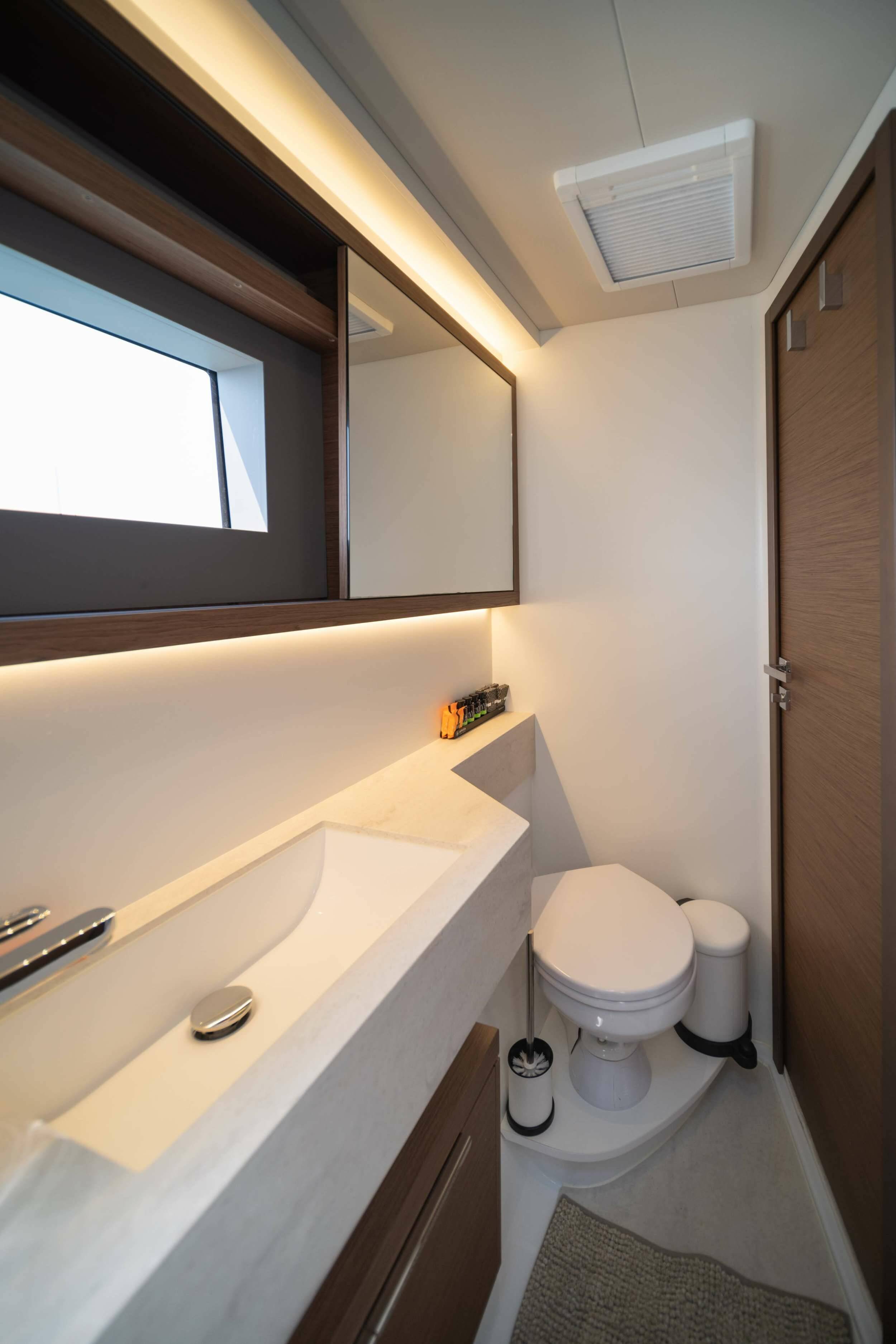 Luxus - Katamaran NOMAD II, Baujahr 2020 liegt in Greece vor Anker. Sie hat 6 Kabinen, bietet Platz für 10 Personen.
