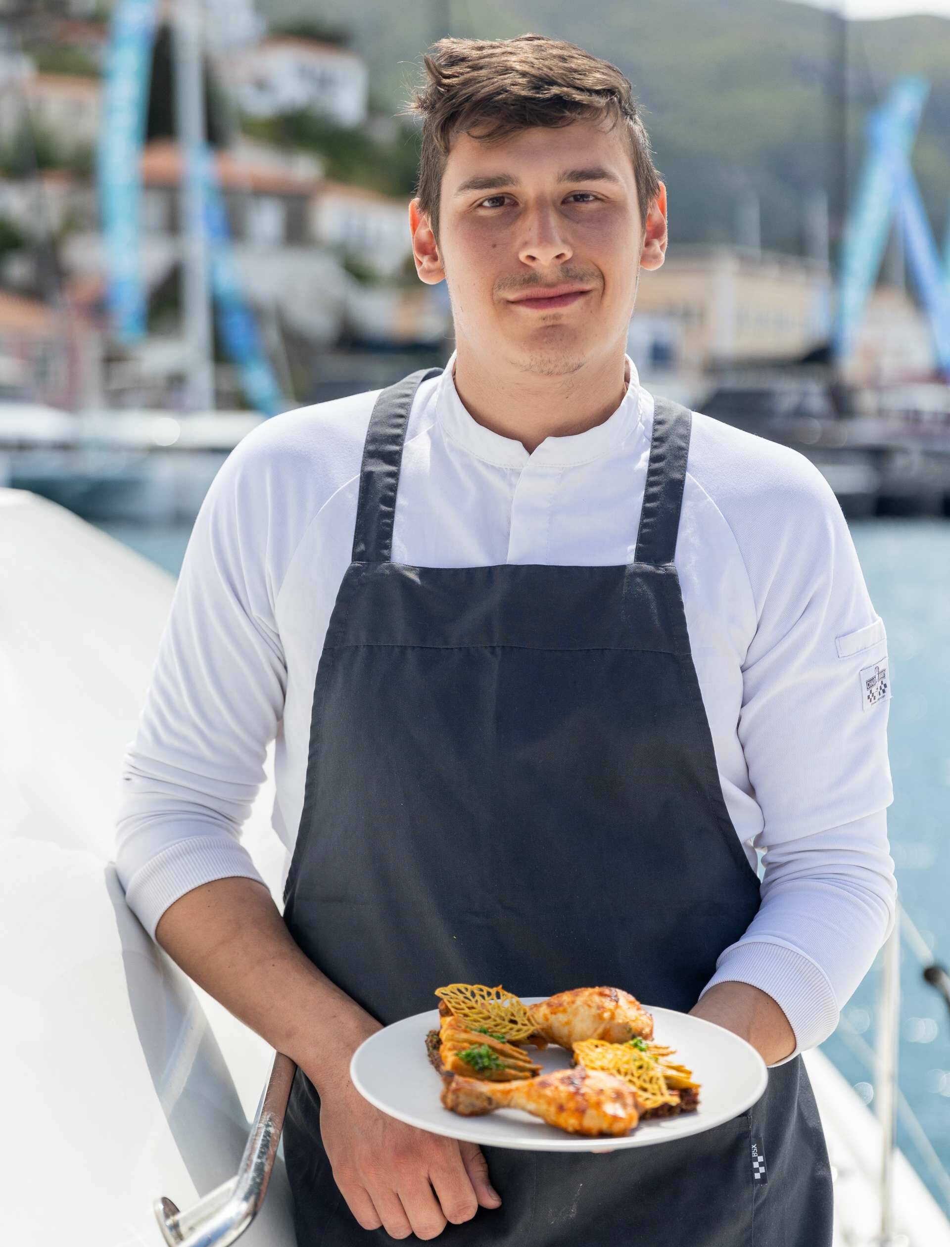 Chef Dimitris, born in Athens in 1998 and raised in Xylokastro, he discovered his passion for cooking at an early age, knowing it was his true calling. His exceptional love for baking, pastries, and seafood stems from his father's influence, who taught him the art of catching, cleaning, and cooking fish from scratch! Over the years, he has worked with numerous chefs across Greece, dedicating themselves to gaining extensive knowledge and honing his culinary skills. Renowned for his organizational abilities, meticulous cleanliness, unwavering passion, strong work ethic, and deep love for his profession, he has built a reputation as a dedicated and talented culinary professional! When he's not in the kitchen or sailing, he enjoys spending his time reading, with a particular focus on history and philosophy. He also finds joy in playing music, traveling, and collecting fascinating stories from his journeys around the globe.
