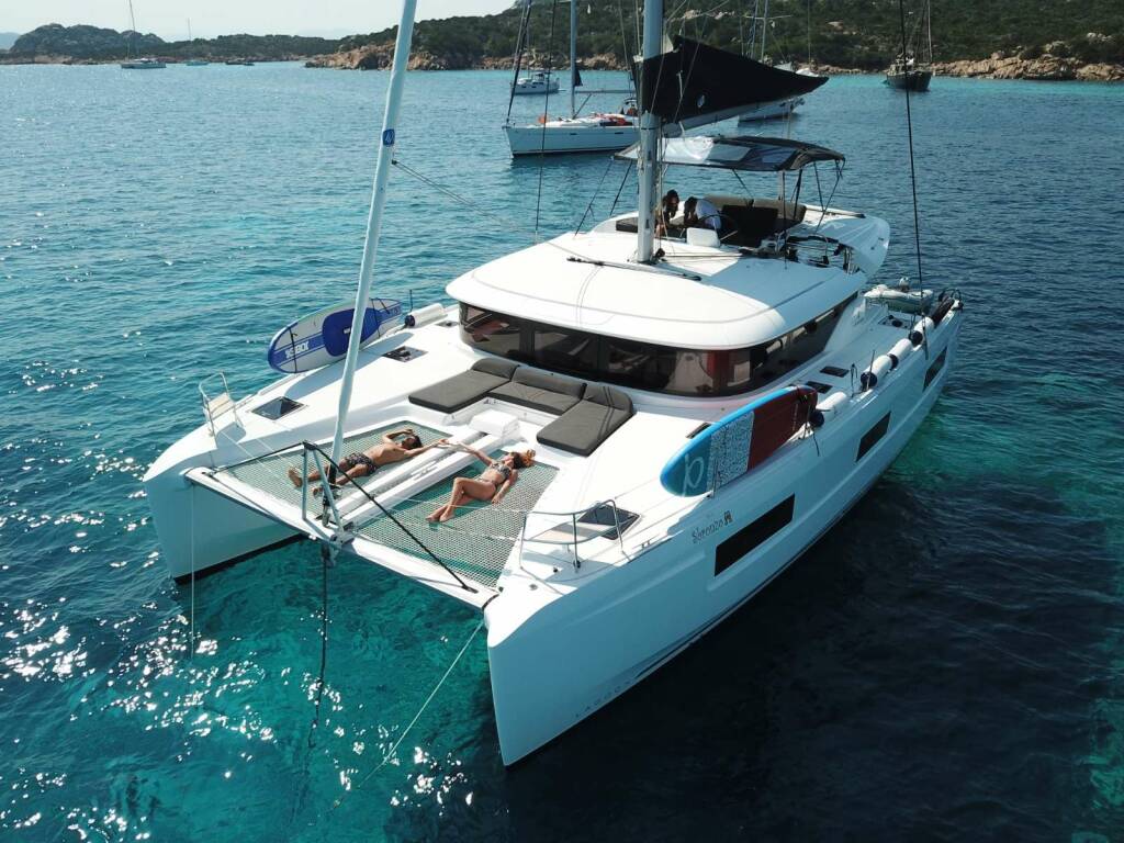 Luxus - Katamaran Sbronzo, Baujahr 2020 liegt in W. Med -Riviera/Cors/Sard. vor Anker. Sie hat 4 Kabinen, bietet Platz für 8 Personen.