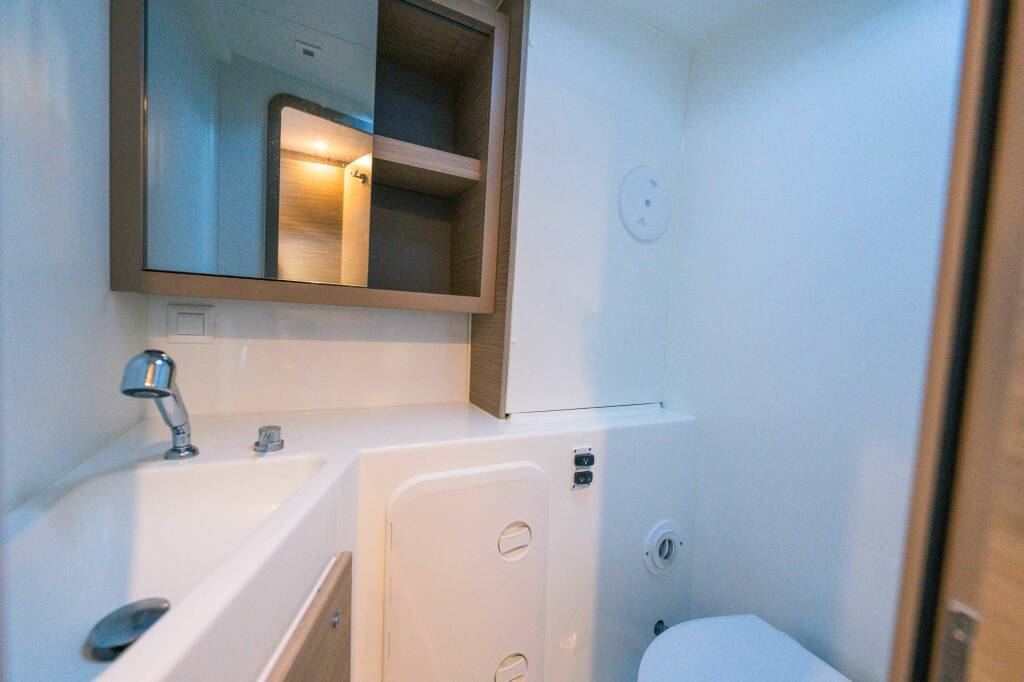 Luxus - Katamaran Veryta, Baujahr 2024 liegt in W. Med -Riviera/Cors/Sard. vor Anker. Sie hat 4 Kabinen, bietet Platz für 8 Personen.