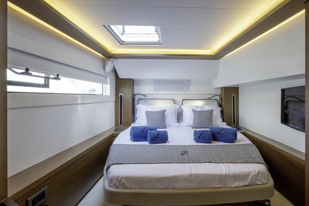 Luxus - Katamaran ZANGA , Baujahr 2021 liegt in Greece vor Anker. Sie hat 3 Kabinen, bietet Platz für 6 Personen.
