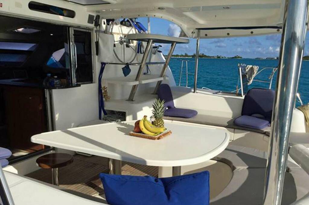 The layout includes one single and four queen-sized cabins with en suite heads; each with separate shower stalls and electric toilets. One cabin is reserved for the captain.