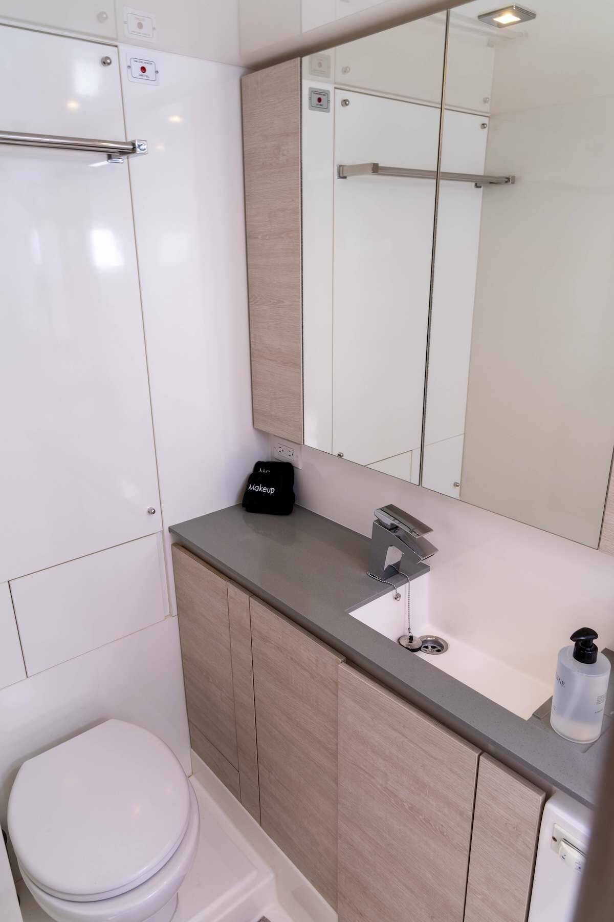 2 x queen cabins each with en-suite bath with electric toilet and stall showers. Both have individual A/C controls for guest comfort. Cabin is equipped with TV.