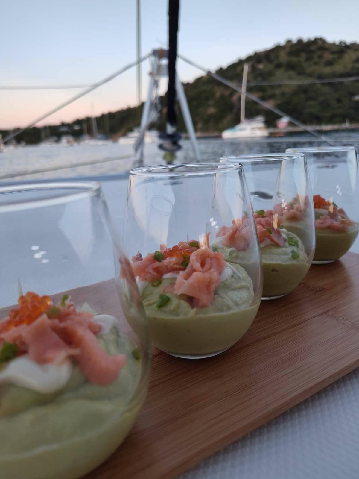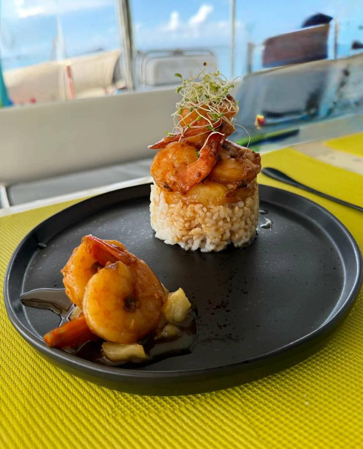 In the galley, Petro is a true artist. Every plate is a visual masterpiece — think vibrant colors, microgreens, edible flowers — and every dish is packed with rich, layered flavor. From Caribbean-Thai fusion to mango dessert sorcery, her cuisine is both daring and deeply comforting.