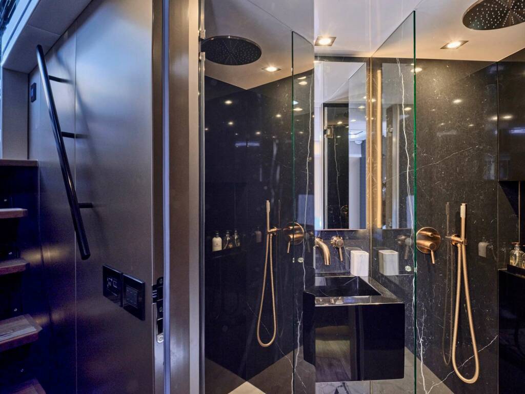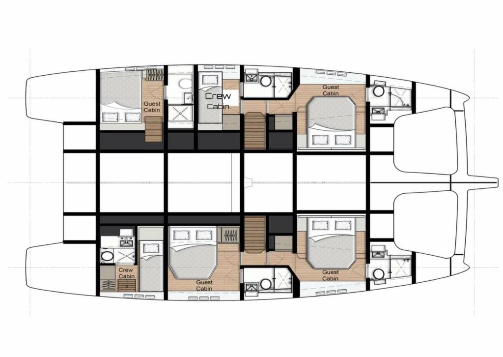Accommodation: four queen bed cabins all with private facilities. Upon request the yacht may be offered with 3 double cabins and one cabin with bunk beds.