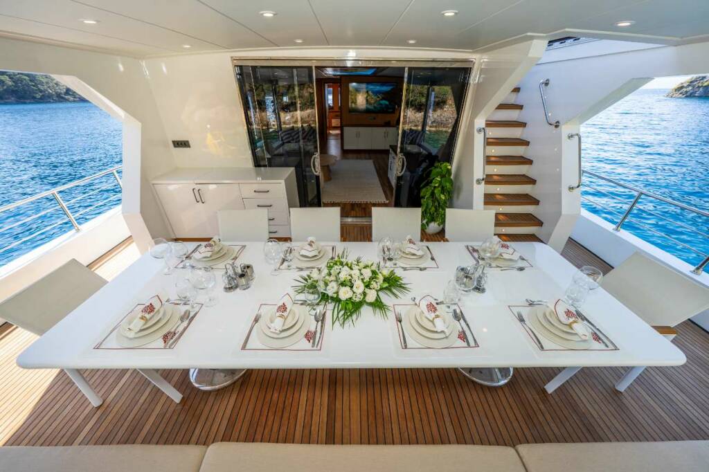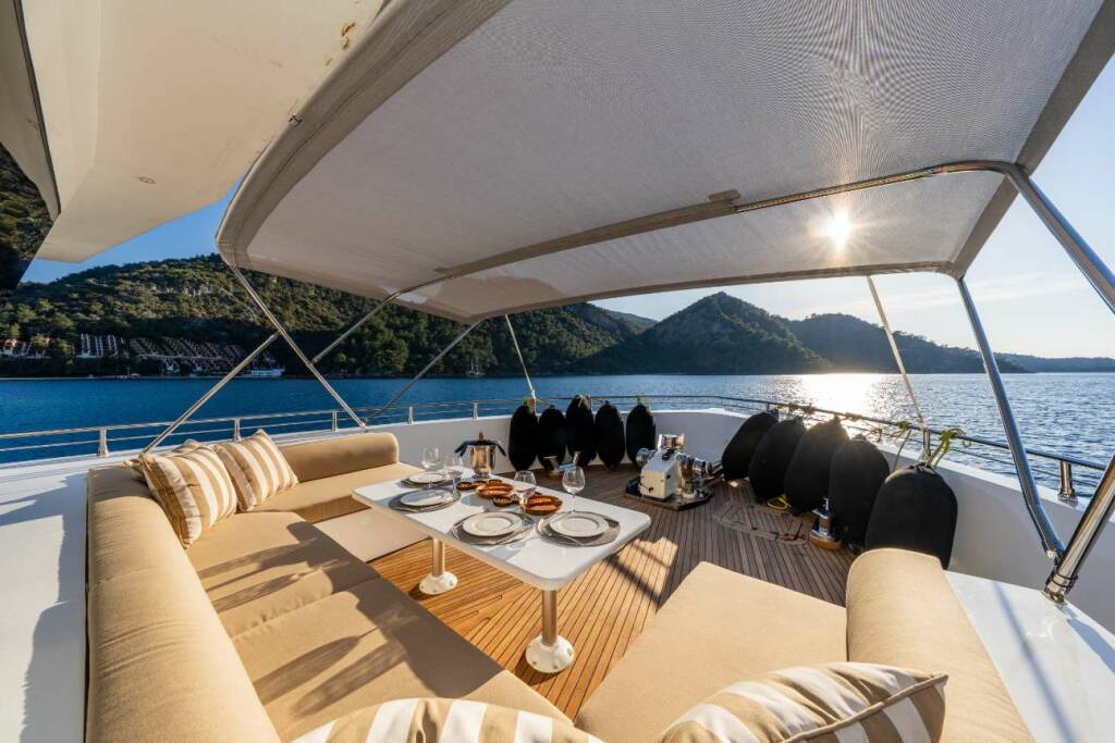 Luxus-Motoryacht LILA, Baujahr 2025 liegt in Turkey vor Anker. Sie hat 5 Kabinen, bietet Platz für 12 Personen.