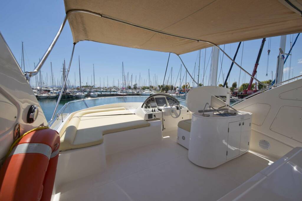Luxus-Motoryacht JULY, Baujahr 2007 liegt in Greece vor Anker. Sie hat 4 Kabinen, bietet Platz für 8 Personen.
