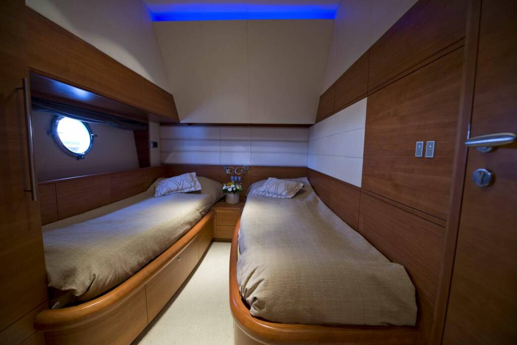 Forward and full beam of the yacht is the VIP cabin, offering a center lined double bed and en-suite facilities.