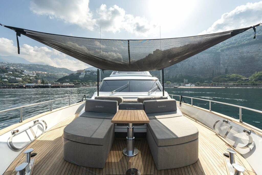 Luxus-Motoryacht Resilience , Baujahr 2006 liegt in W. Med -Naples/Sicily, W. Med -Riviera/Cors/Sard. vor Anker. Sie hat 4 Kabinen, bietet Platz für 10 Personen.