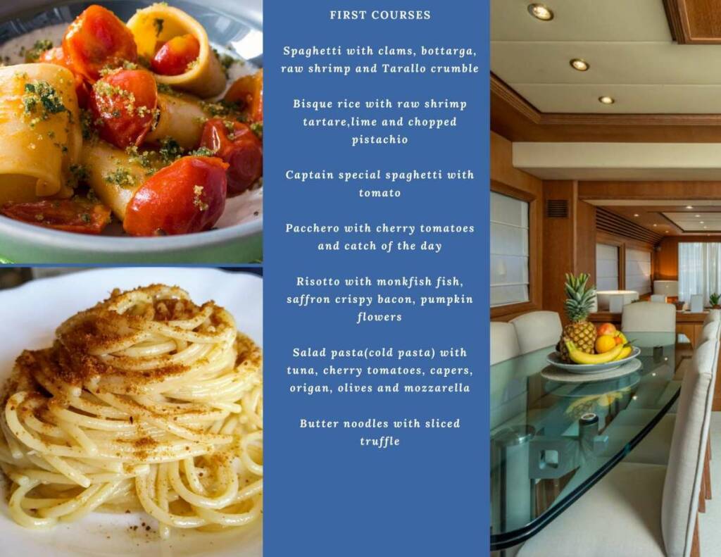 He’s very respectful and discreet, a real lover of the sea and also a great chef. His ability to create a relaxed and cheerful atmosphere on board his yachts has no equals and he’s very skilled in suggesting insider’s restaurants and activities. Italian mother tongue, he also speaks English and French.