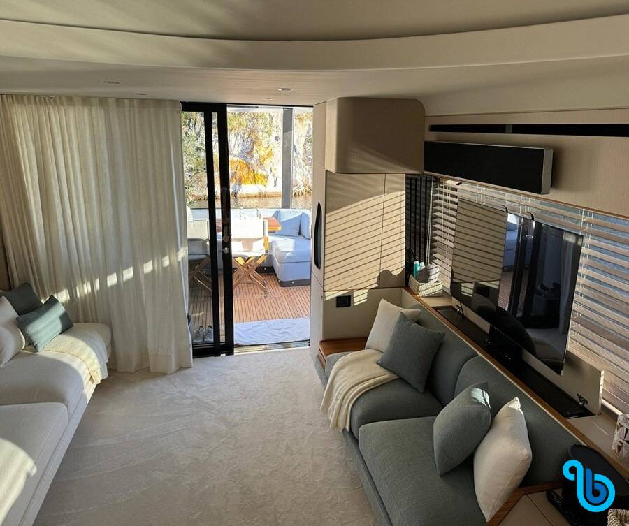 Luxus-Motoryacht Azimut 68 Pangea, Baujahr 2024 liegt in Kroatien vor Anker. Sie hat 4 Kabinen, bietet Platz für 8 Personen.