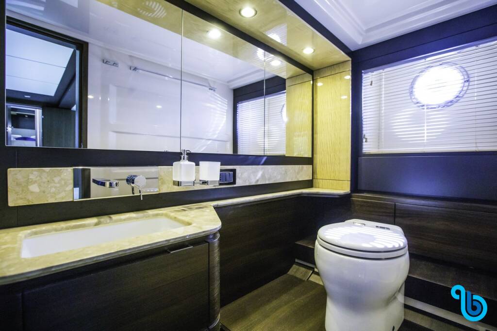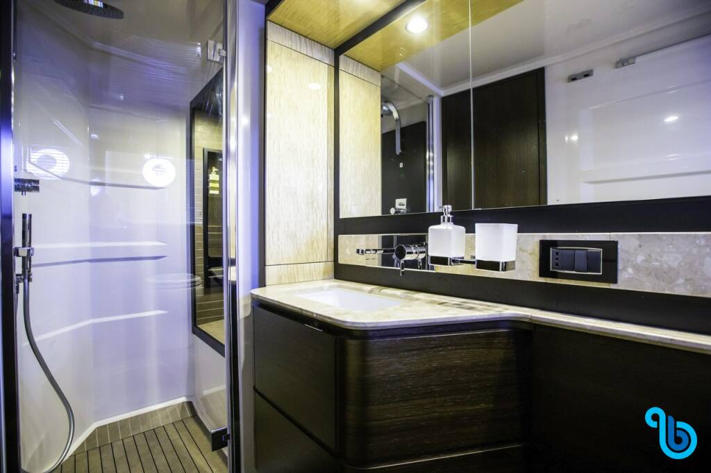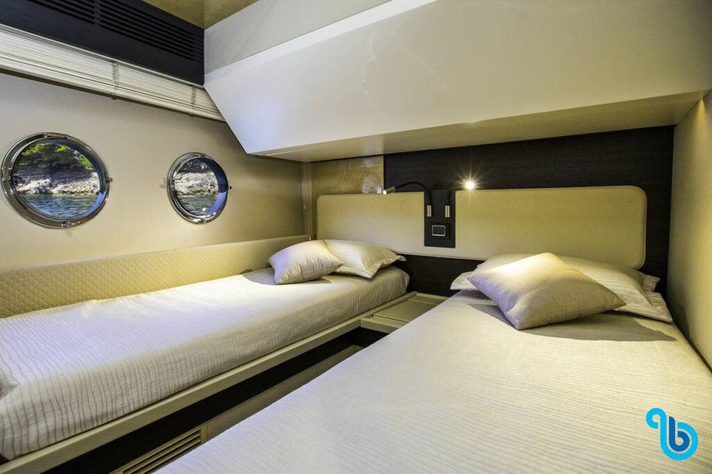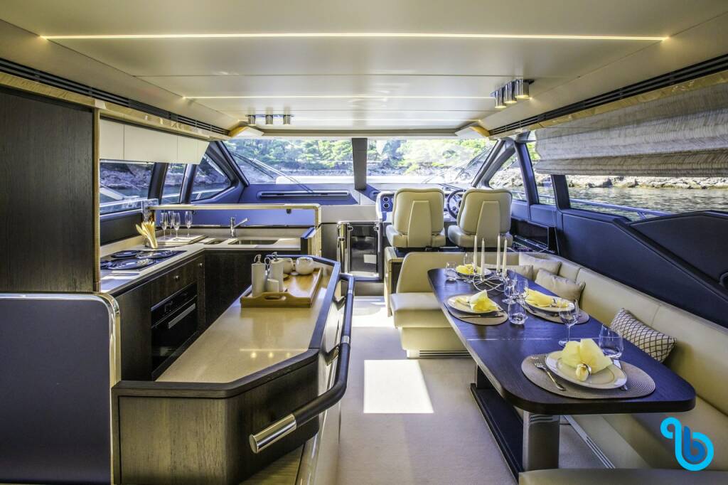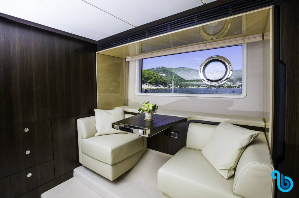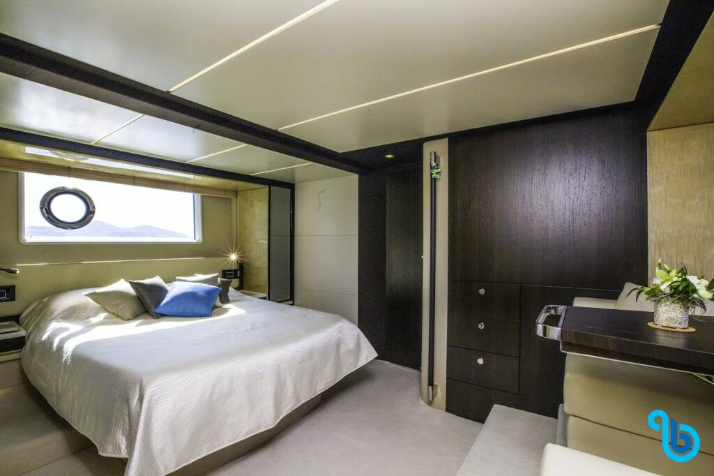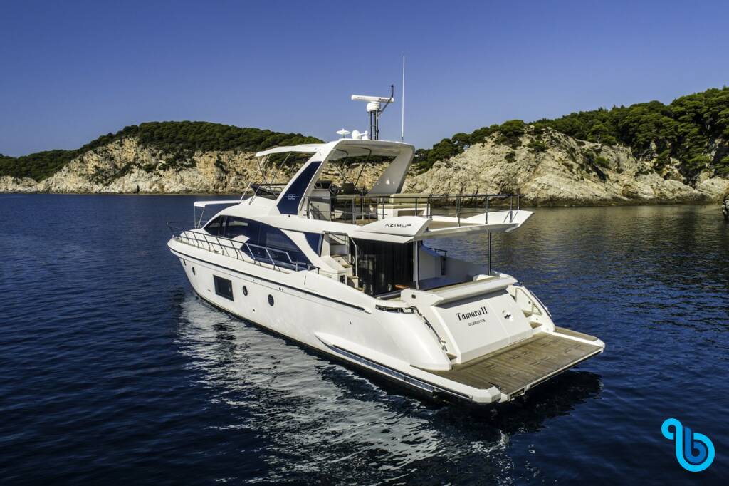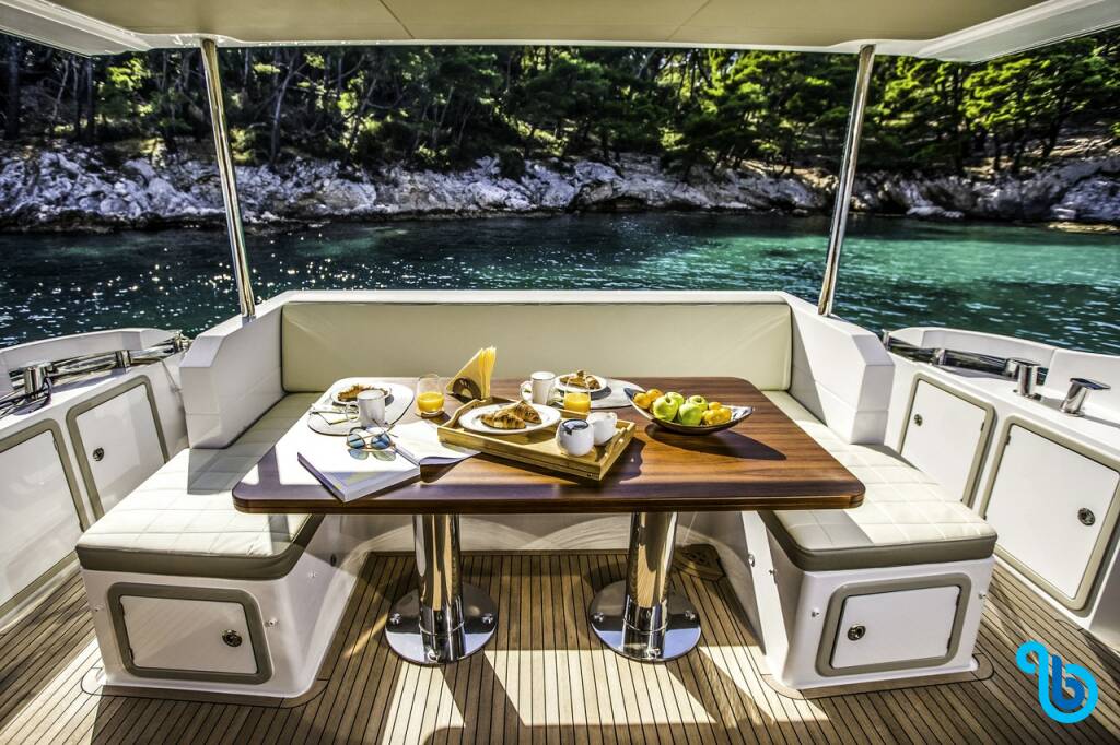Luxus-Motoryacht Azimut 66 Tamara II, Baujahr 2018 liegt in Kroatien vor Anker. Sie hat 4 Kabinen, bietet Platz für 8 Personen.
