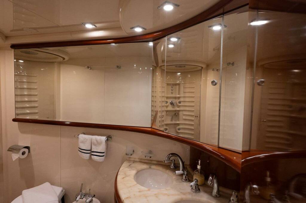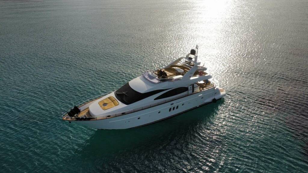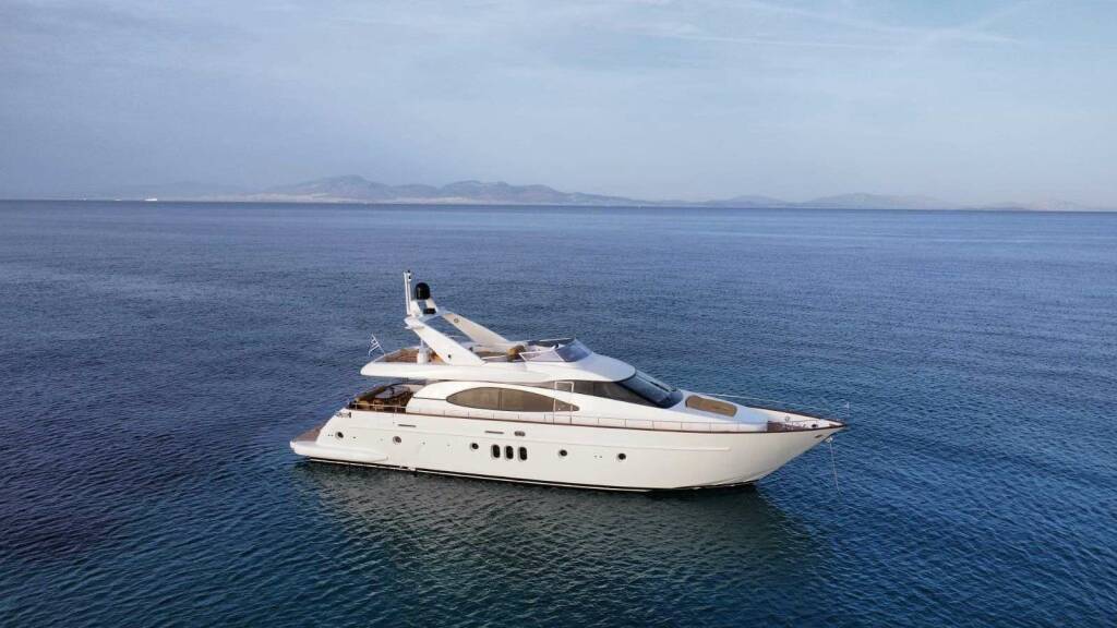 Luxus-Motoryacht ESTIA ZEUS, Baujahr 2003 liegt in Greece vor Anker. Sie hat 4 Kabinen, bietet Platz für 8 Personen.