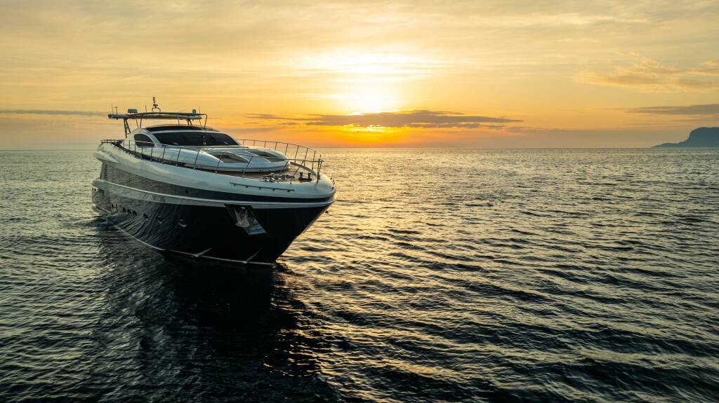 Luxus-Motoryacht NYLEC, Baujahr 2003 liegt in W. Med -Naples/Sicily vor Anker. Sie hat 4 Kabinen, bietet Platz für 8 Personen.
