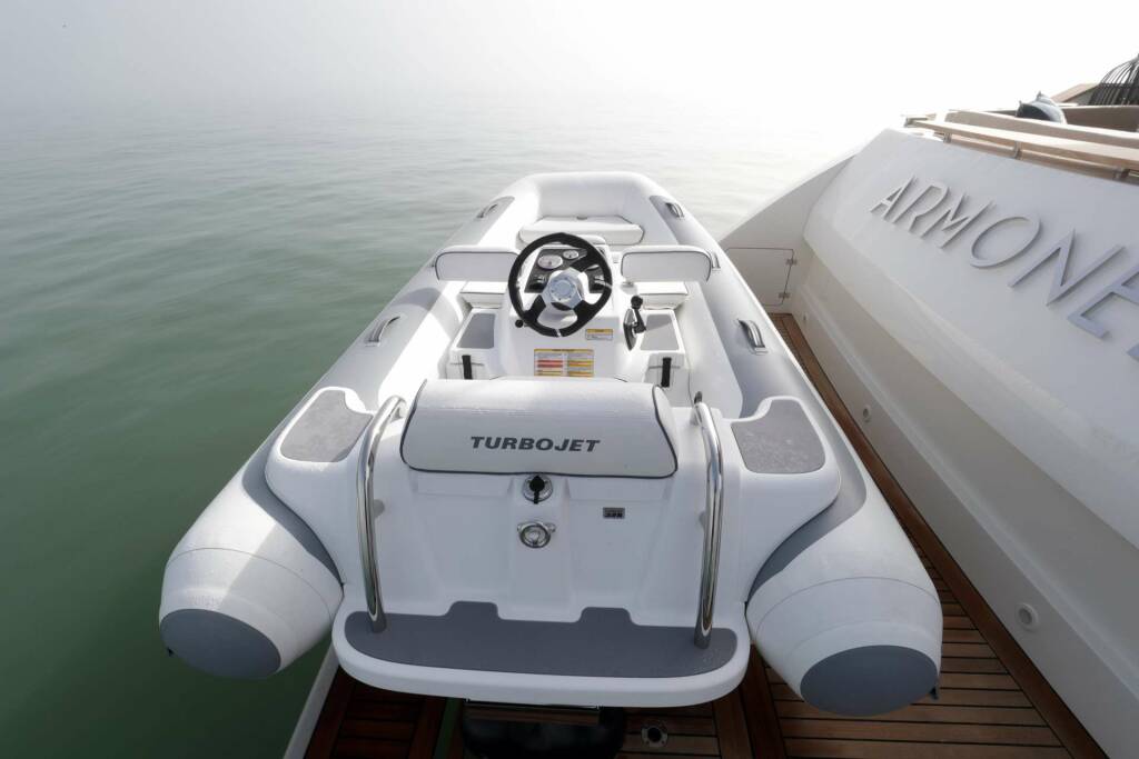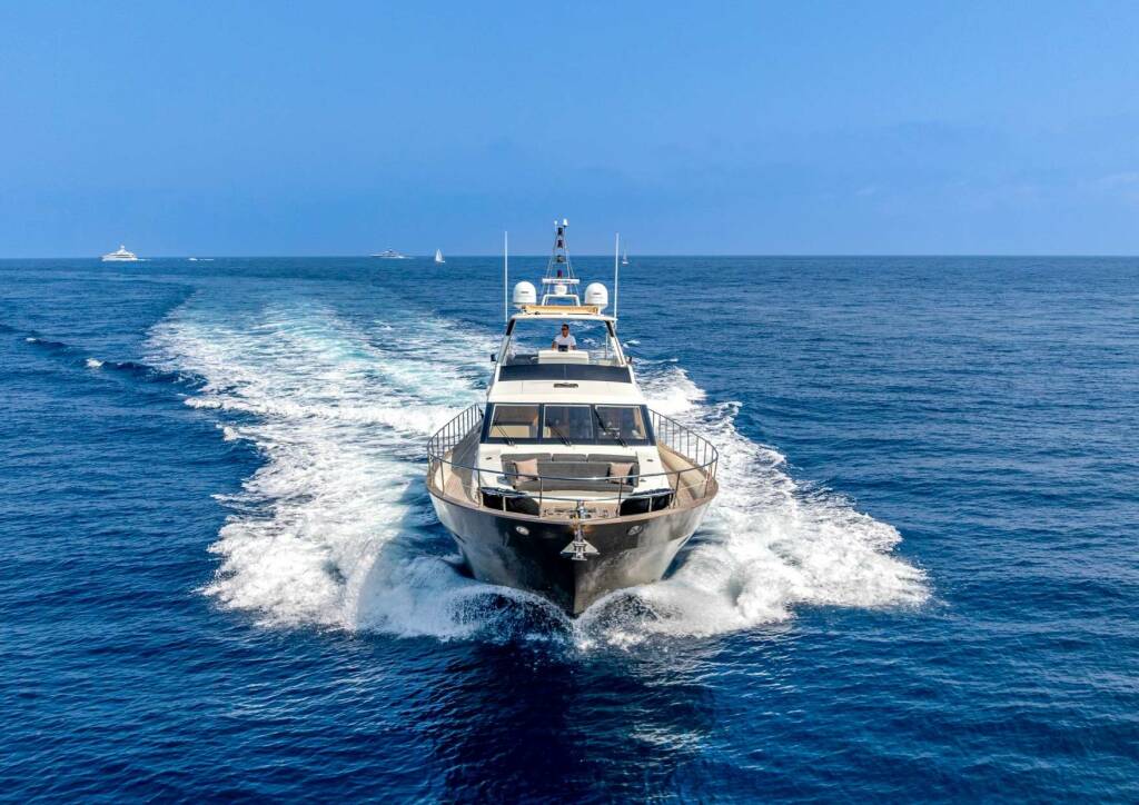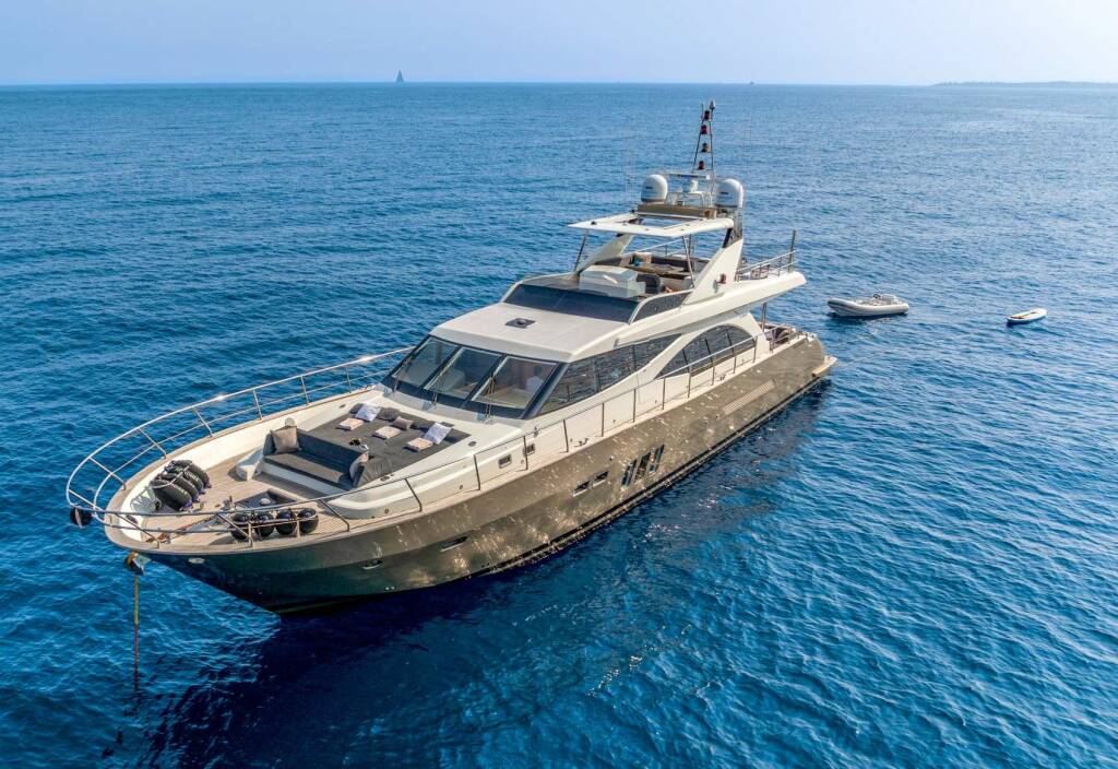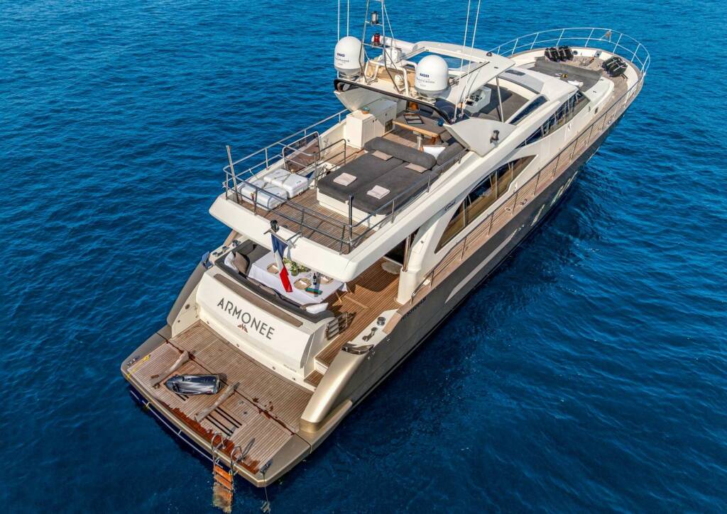 Luxus-Motoryacht Armonee, Baujahr 2017 liegt in W. Med -Riviera/Cors/Sard. vor Anker. Sie hat 4 Kabinen, bietet Platz für 8 Personen.