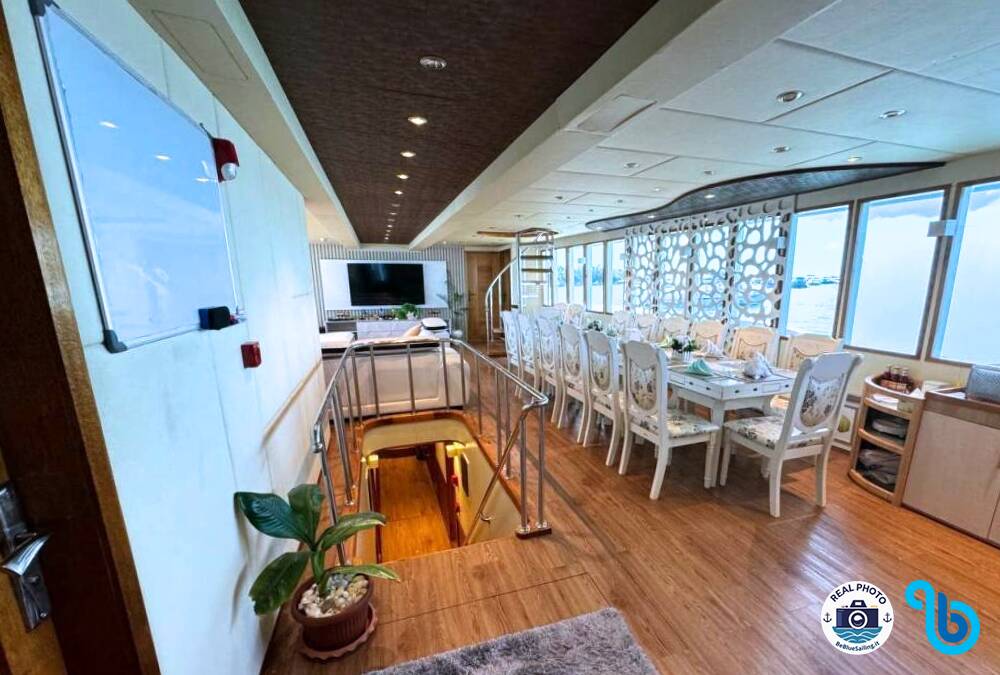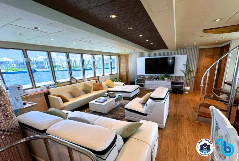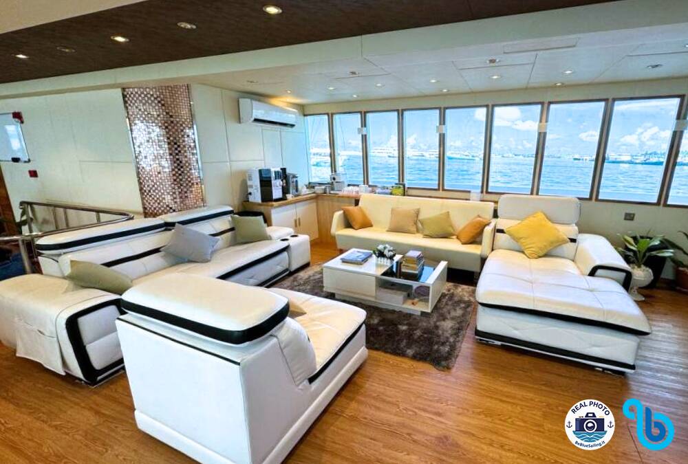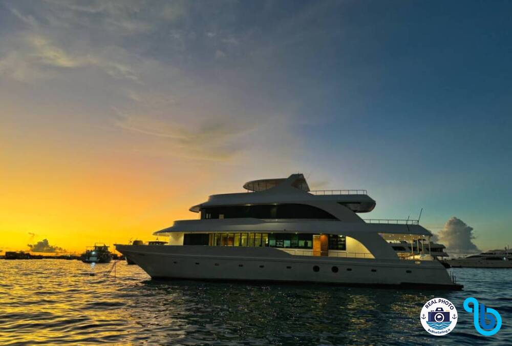 Luxus-Motoryacht Motor Yacht NORTH SEVEN, Baujahr 2021 liegt in Malediven vor Anker. Sie hat 10 Kabinen, bietet Platz für 21 Personen.