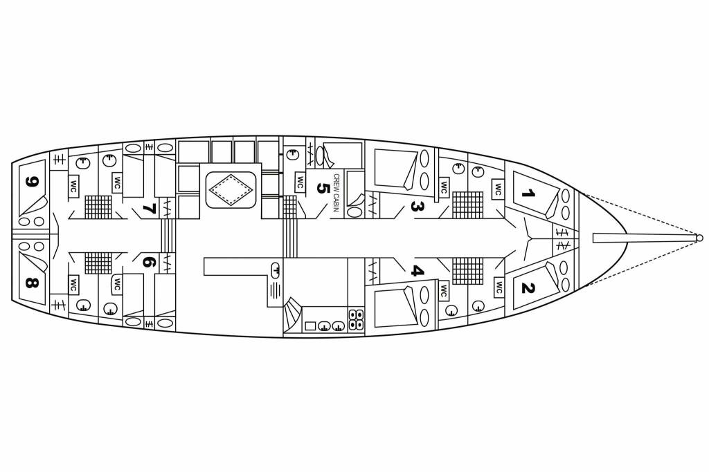 - 7-night cruise aboard a traditional gulet 6 double and 2 twin cabins with private facilities