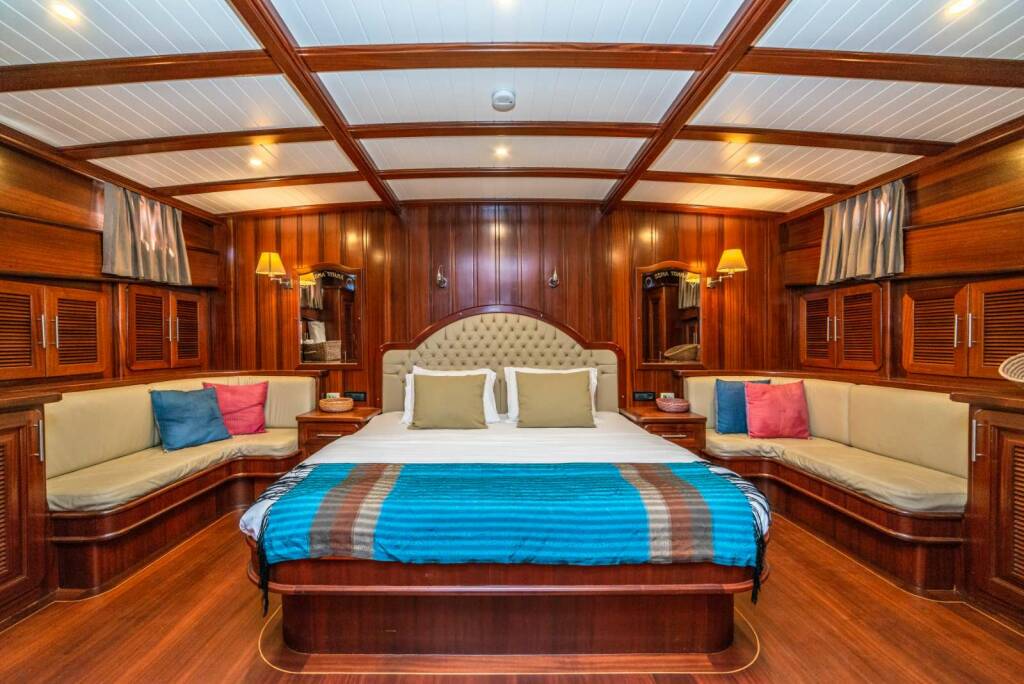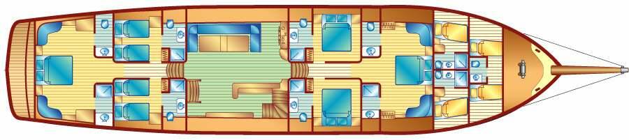 Accommodation: 2 master cabins with queen size double bed, 2 double cabins