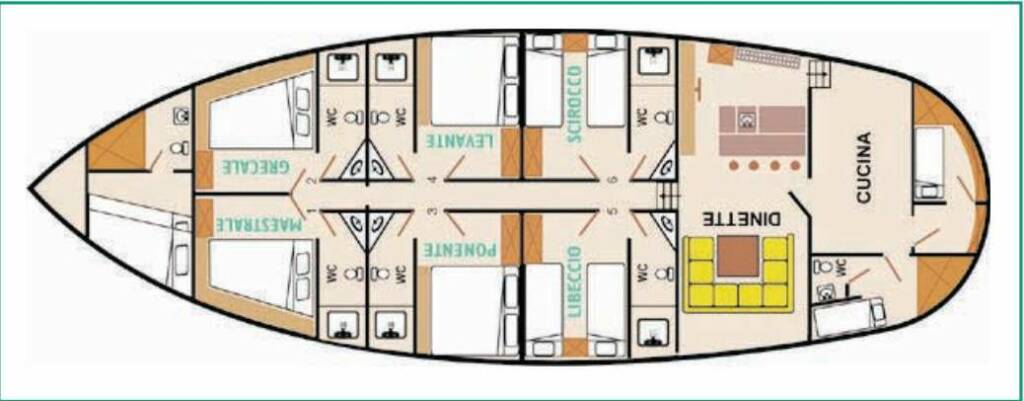 Die meisten Yachten können je nach Innenaufteilung 6 bis 12 Gäste aufnehmen.