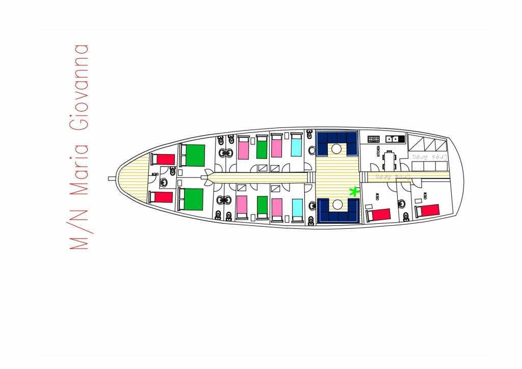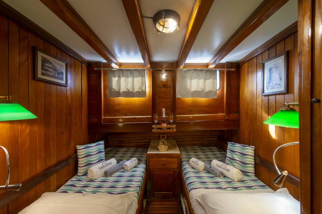 Accommodation: 2 double cabins with a third single bed, ensuite bathroom and shower box