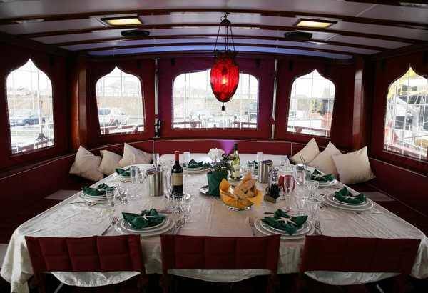 Food (to be paid upon embarkation or with balance payment): Half Board mandatory (7 breakfasts, 6 lunches, 1 dinner) €420guest/week, Full Board (2 dinners excluded 7 breakfasts, 6 lunches, 5 dinners) €550/guest/week. Children 0-2 years old free of charge, 3-10 years old 50%. Food packages do not include special food (i.e lobster, and they are at extra cost).