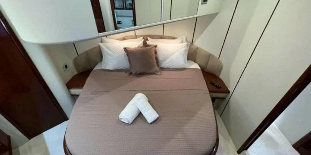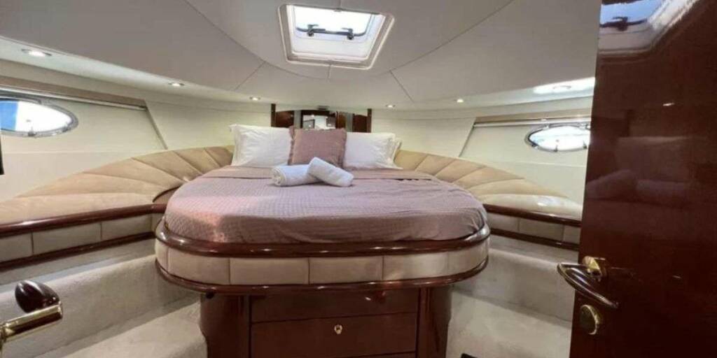 Luxus-Motoryacht Bliss, Baujahr 2006 liegt in Greece vor Anker. Sie hat 2 Kabinen, bietet Platz für 2 Personen.