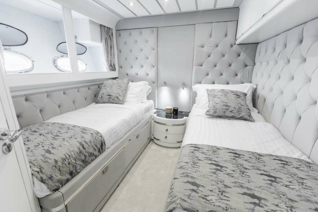 Motor Engines: 2 x MTU 16V 2000 M90 (total 3.600HP) Engines fuel consumption: 450 Litres/Hr (cruising) Generators: 1 x ONAN 19KW, 1 x ONAN 25KW Generators consumption: 200 Litres/Day Cruising speed: 24 knots Max cruising speed: 31 knots