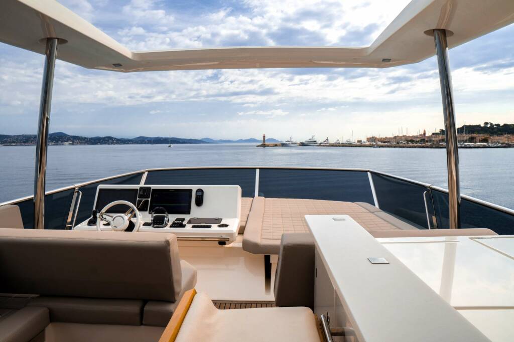 Luxus-Motoryacht Romy One, Baujahr 2020 liegt in W. Med -Riviera/Cors/Sard. vor Anker. Sie hat 4 Kabinen, bietet Platz für 8 Personen.