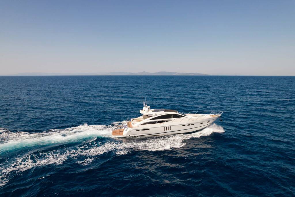 Luxus-Motoryacht MOJO, Baujahr 2008 liegt in Greece vor Anker. Sie hat 2 Kabinen, bietet Platz für 4 Personen.