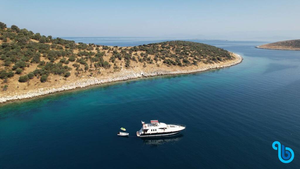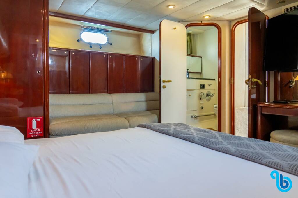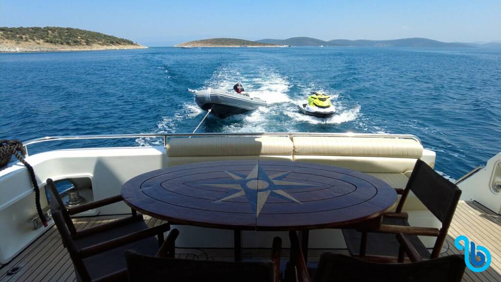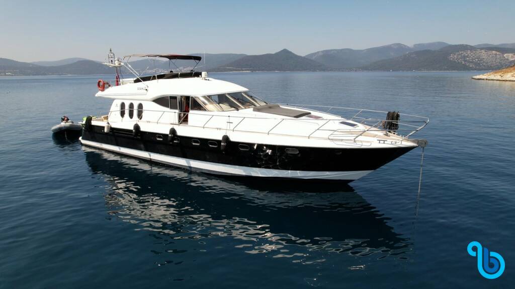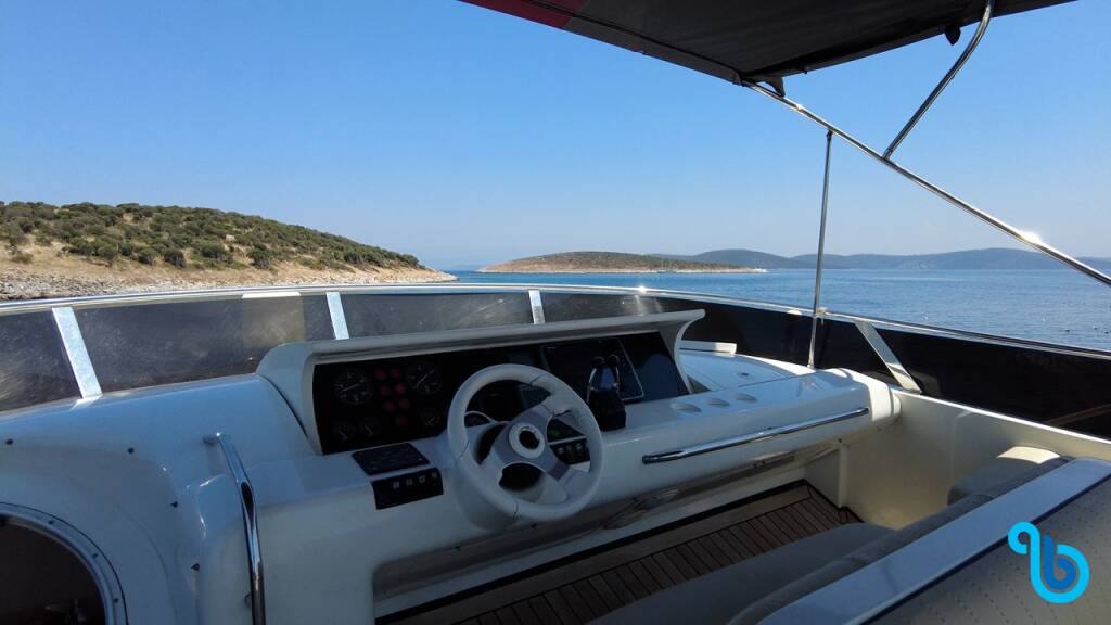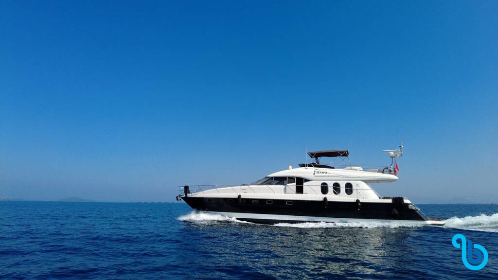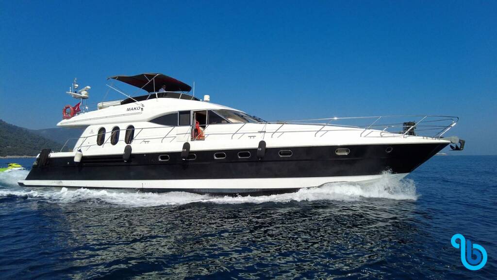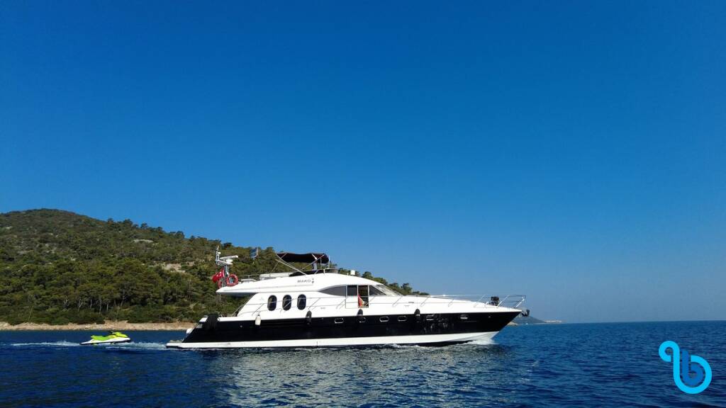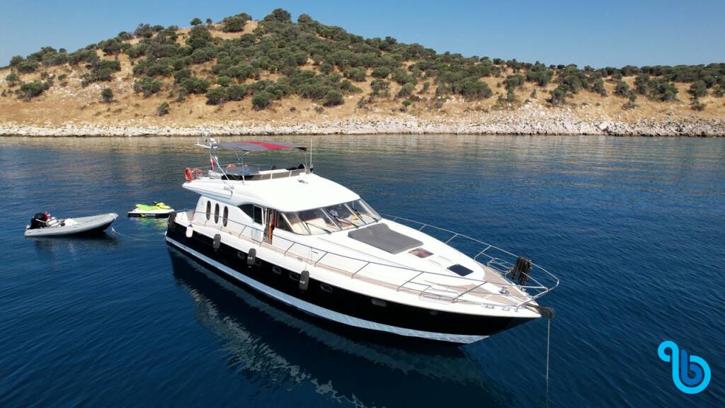 Luxus-Motoryacht Princess 20M Mako, Baujahr 1997 liegt in Türkei vor Anker. Sie hat 4 Kabinen, bietet Platz für 7 Personen.