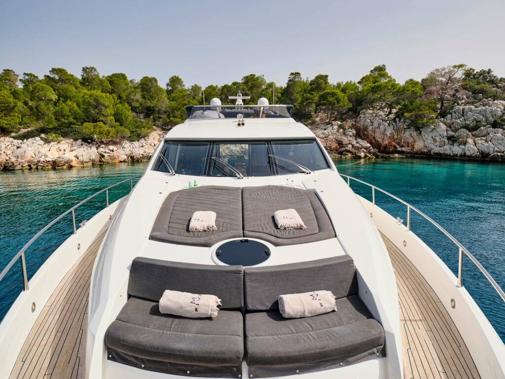 Luxus-Motoryacht M FIVE, Baujahr 2007 liegt in Greece vor Anker. Sie hat 4 Kabinen, bietet Platz für 8 Personen.