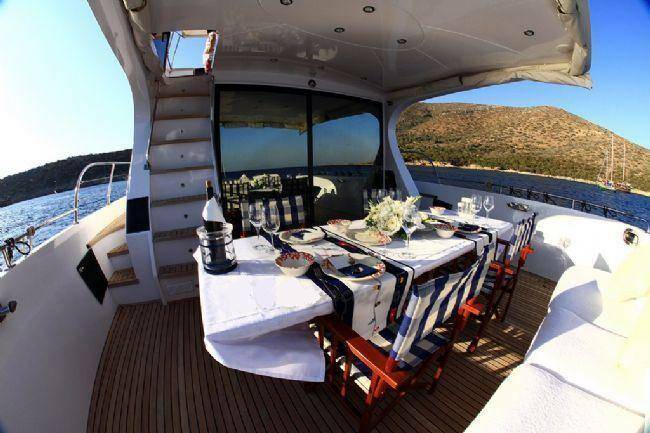 Luxus-Motoryacht JOEY, Baujahr 2009 liegt in Greece, Turkey vor Anker. Sie hat 3 Kabinen, bietet Platz für 6 Personen.