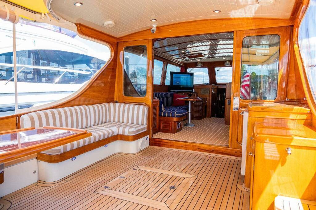 Luxus-Motoryacht GEM 64, Baujahr 2003 liegt in USA - New England vor Anker. Sie hat 2 Kabinen, bietet Platz für 4 Personen.