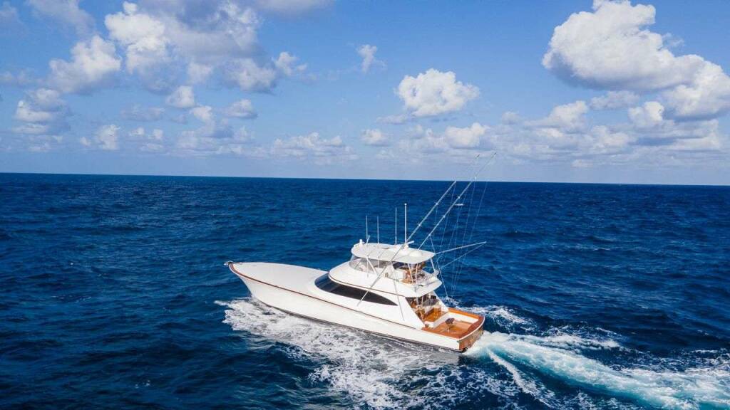 All staterooms include their own ensuite head with separate shower. The VIP stateroom forward and the guest cabin aft are both appointed with walk-around queen beds. A guest and crew stateroom are on the port side, each with upper and lower berths. The crew stateroom is immediately adjacent to the rod and tackle locker.