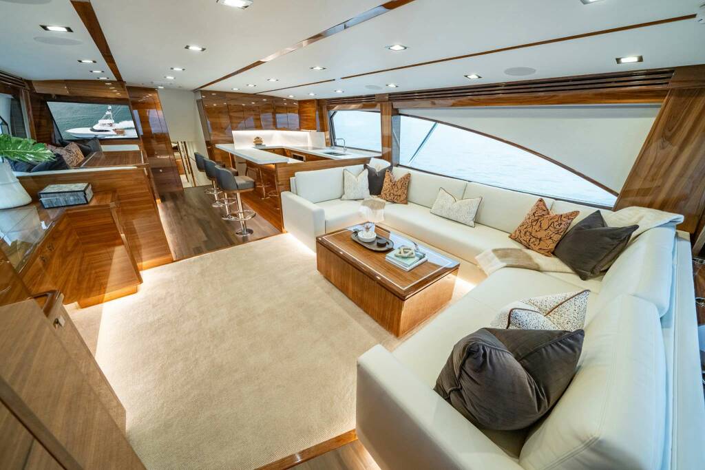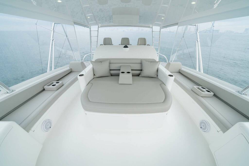 The 82 gives you more cockpit space and a larger mezzanine that allows for increased storage and a new extended lounge to starboard. Just under 230 square feet, the cockpit is built with everything you need to make it to the Winner’s Circle, including a transom door and lift gate, a transom fishbox/live well and full-length in-deck fish boxes with split lids to port and starboard.