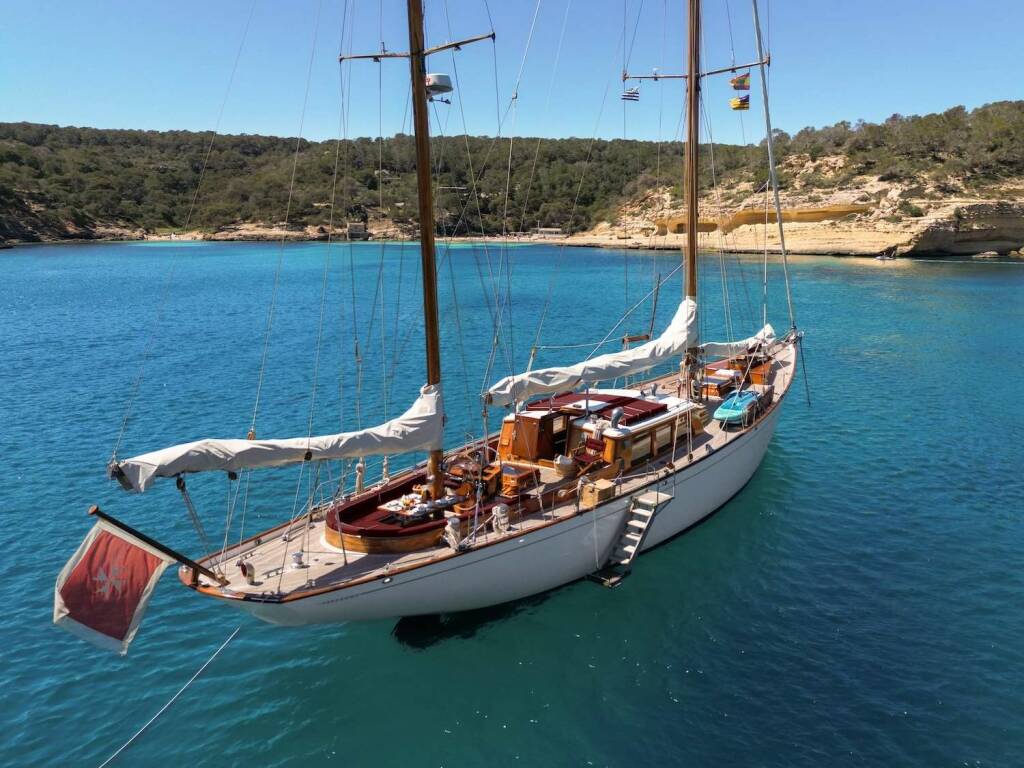 Luxus-Segelyacht GAEL I, Baujahr 1962 liegt in W. Med -Naples/Sicily, W. Med -Riviera/Cors/Sard. vor Anker. Sie hat 3 Kabinen, bietet Platz für 6 Personen.