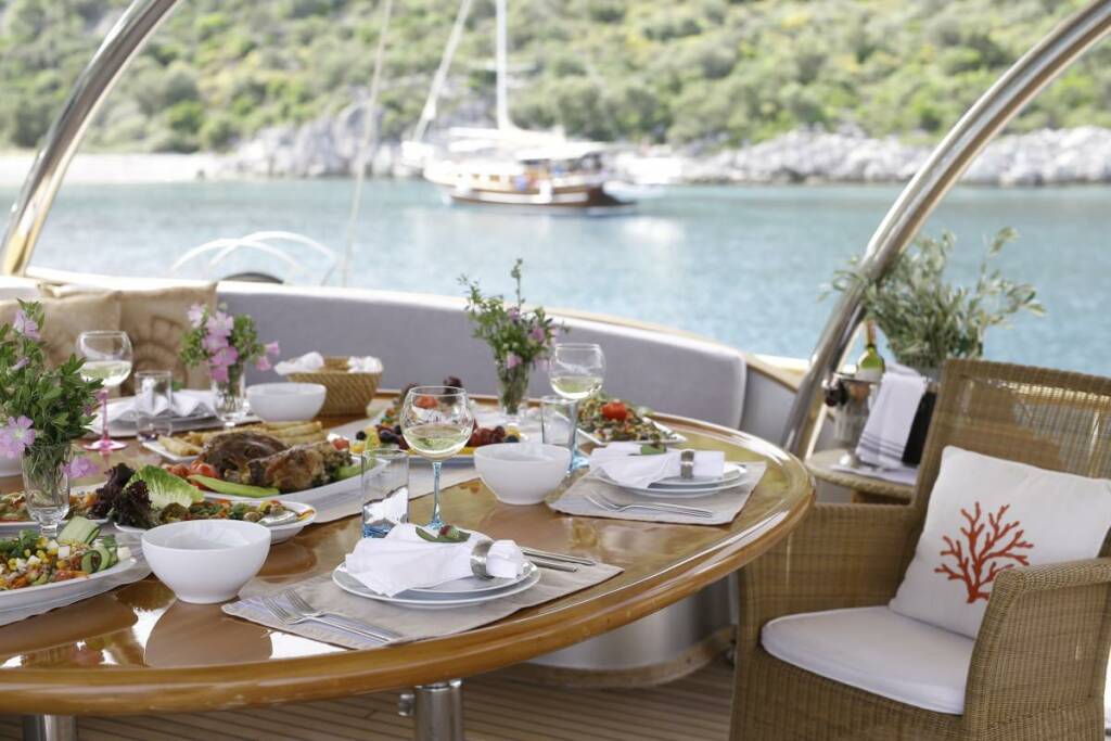 Has been on charter yachts for 15 years , the boat receives complimentary letters from clients .The Customers repeat their bookings mostly because of his delicious world dishes, English , Continental and traditional Turkish breakfasts , cold mezes and salads are his speciality. Sea food of all kinds and best roasted meat can e mentioned amongst his plates. The dessert...words cannot be adequate to describe his world and traditional elegantly plated style .Not to count the 5 o�clock tea and the home made cakes.