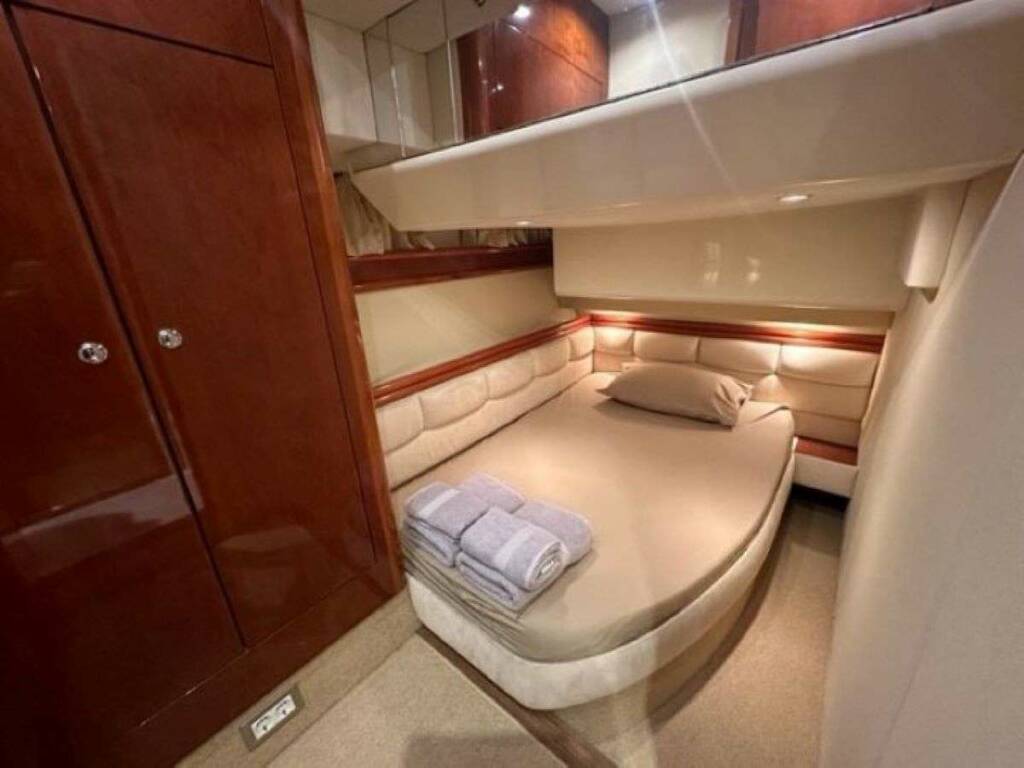 Power catamaran AMILLA, Baujahr 2007 liegt in Greece vor Anker. Sie hat 2 Kabinen, bietet Platz für 4 Personen.