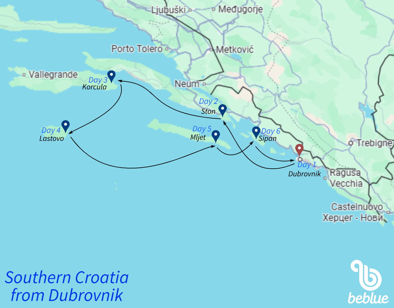 Eine 7-tägige Kreuzfahrt, auf der Sie in die atemberaubende Schönheit der Natur, die reiche Kultur und die faszinierende Geschichte Kroatiens eintauchen können. Von Slano in der Nähe von Dubrovnik aus führt Sie unsere Reise zu den faszinierendsten Zielen an der süddalmatinischen Küste. Genießen Sie unvergleichlichen Komfort und Entspannung an Bord eines 14 Meter langen Segelkatamarans mit einer professionellen Crew, die sich um all Ihre Bedürfnisse kümmert, von der Besichtigung der schönsten Sehenswürdigkeiten bis hin zur köstlichen adriatischen Küche. Setzen Sie die Segel für eine einzigartige Erfahrung und segeln Sie durch Kroatien wie nie zuvor.