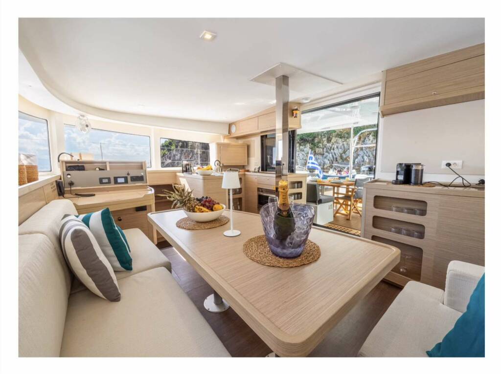 Luxury catamaran INSPIRE, built in 2025 is anchored in the Greece. It has 3 cabins, can accommodate 6 people.